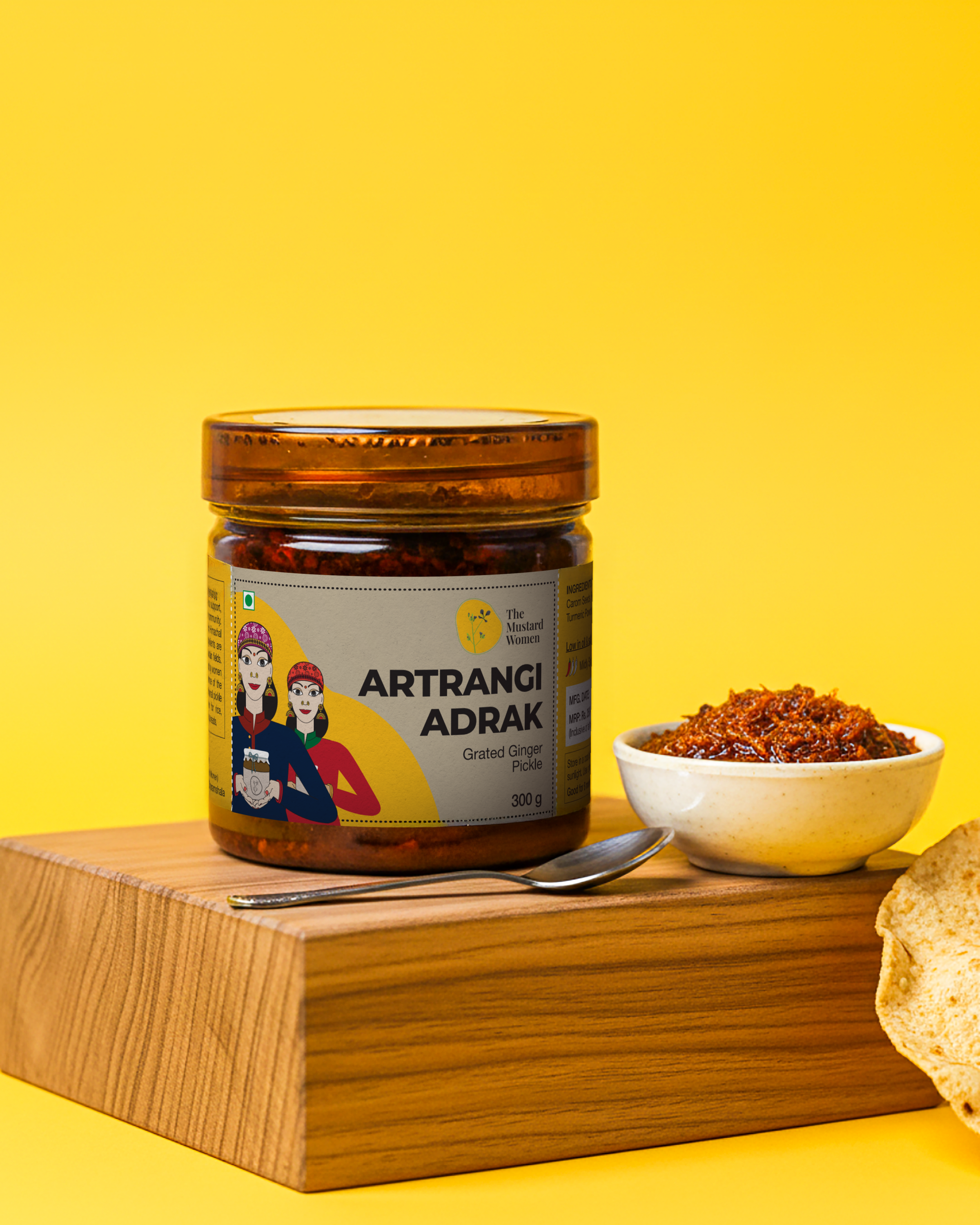 A traditional Himachali recipe, prepared in almost every household of Himachal Pradesh. This pickle is made with freshly grated ginger which offers a unique balance of tangy ginger, and just a hint of sweetness and spice. It is a versatile accompaniment you can enjoy throughout the year, though it is typically enjoyed in the cold winter months for its warming properties and digestive benefits.